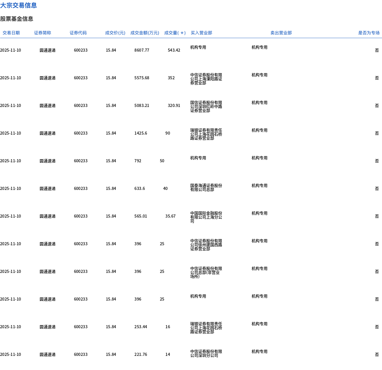 进入圆通速递今日大宗交易折价成交1537万股,成交额2.43亿元教程